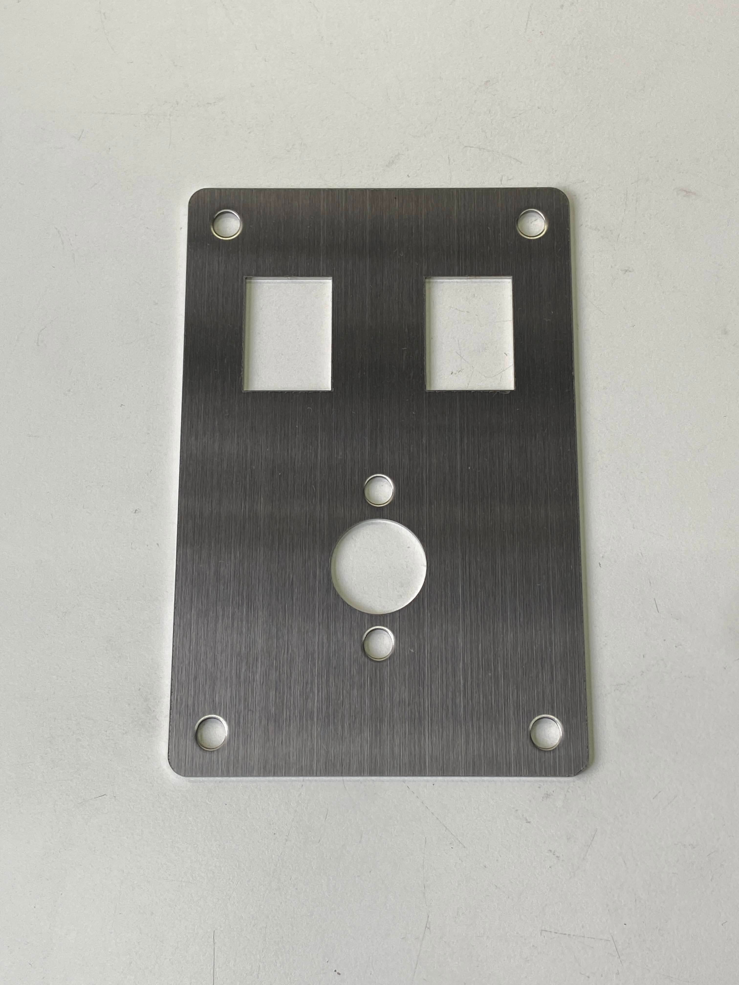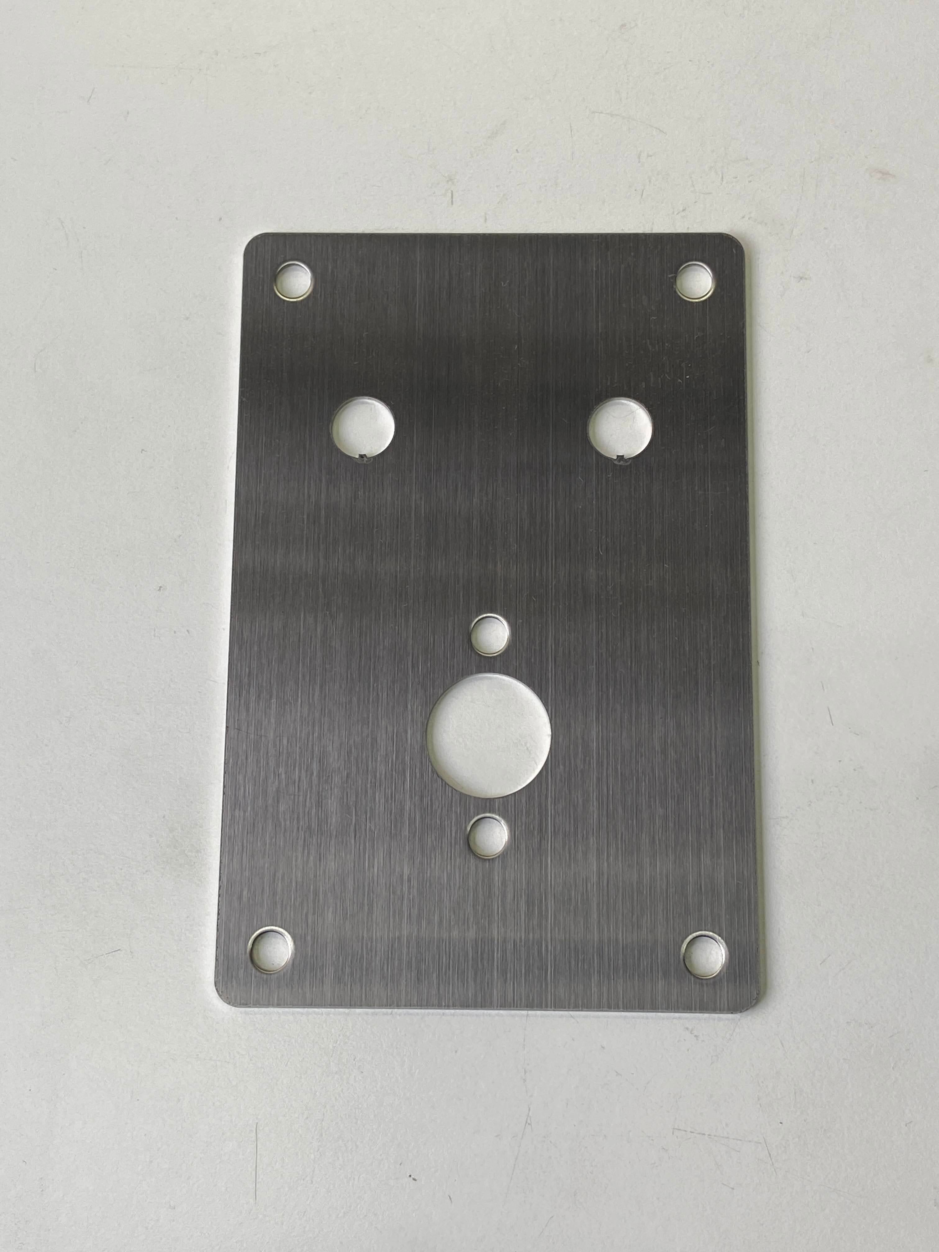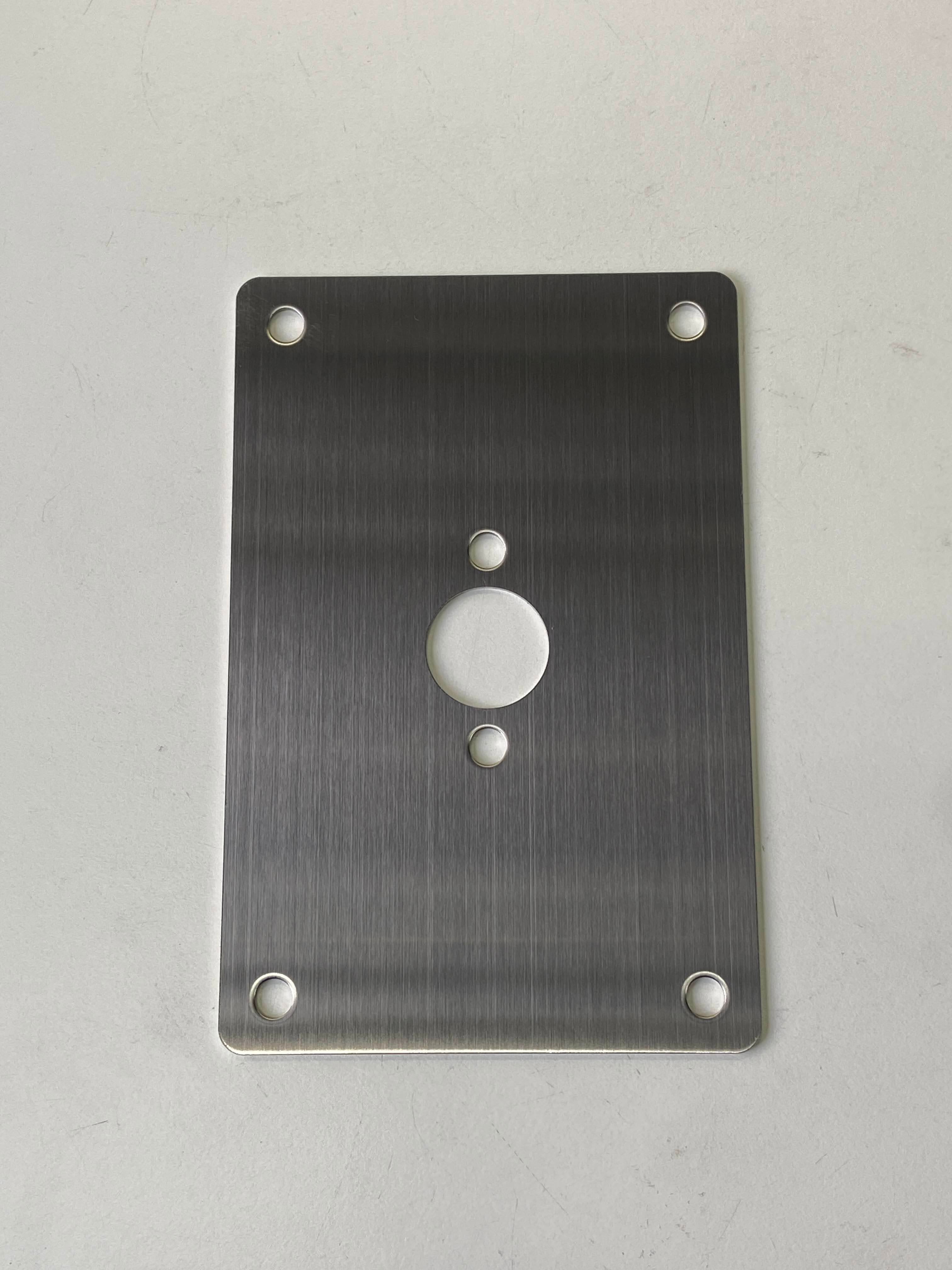 ステンレスのヘアライン仕上げとアルミのブラックアルマイト部品の