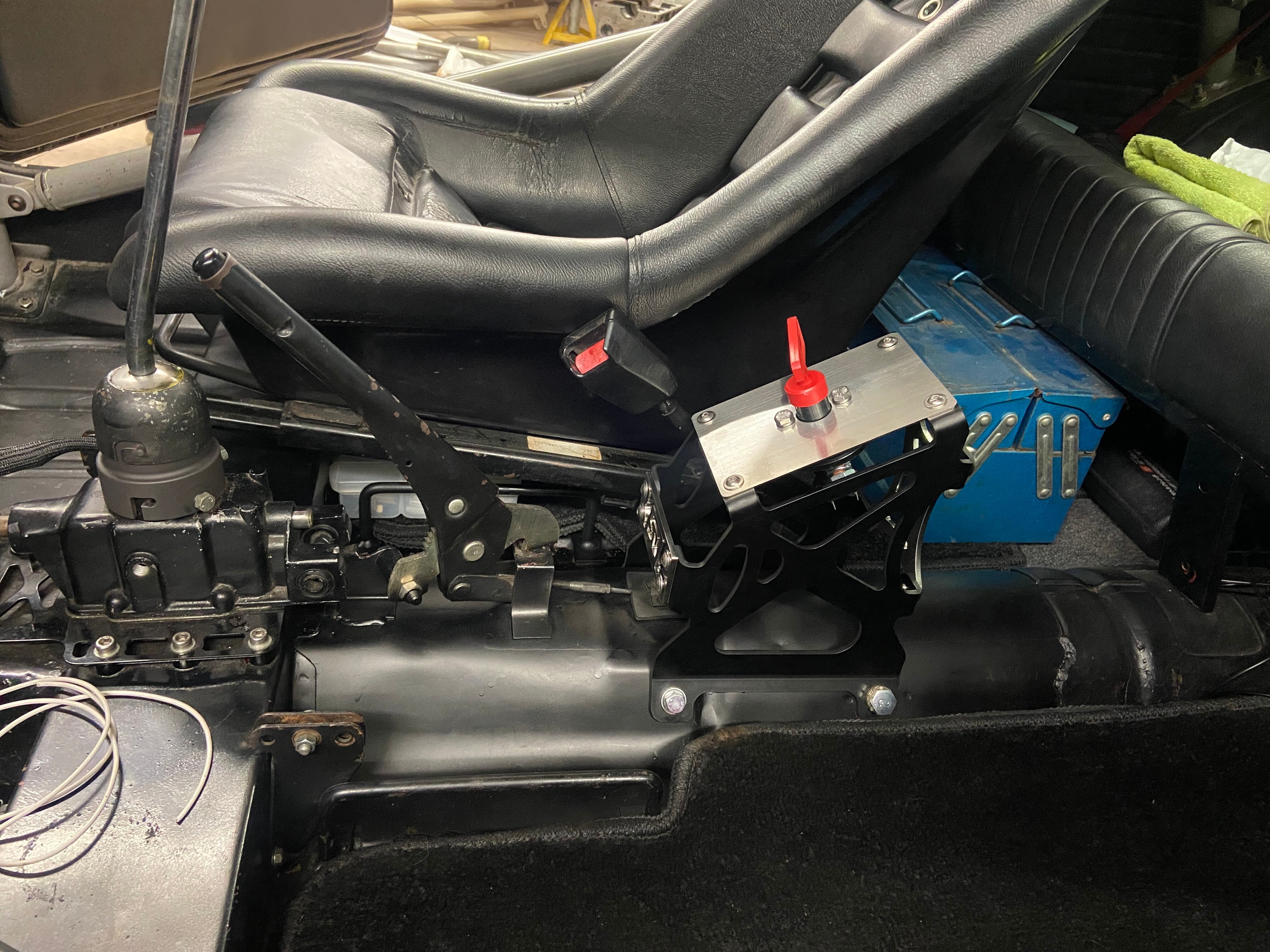 固定穴4か所のうち2か所はセンタートンネルのシートベルトバックル固定ボルトを